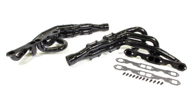 Headers - Conventional Crossover - 1.75 in Primary - 3.5 in Collector - Gaskets / Hardware Included - Steel - Black Paint - Small Block Chevy - Pair