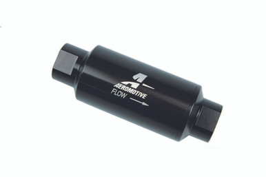 Fuel Filter - In-Line - 100 Micron - Stainless Element - 10 AN Female O-Ring Inlet - 10 AN Female O-Ring Outlet - Aluminum - Black Anodized - Each